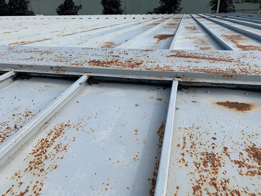 Watch for rust around seams, fading surfaces, standing water, small leaks, or bent panels. These are red flags that your roof is starting to fail.